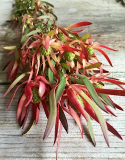 Leucadendron Ebony or also called Burgundy Sunset. It’s stunning and mesmerizing! This Leucadendron was named because of its dark-purple leaf color. But when Ebony blooms in winter, the bracts that surround the ‘true flower’ turn a bright burgundy red. This year’s display is rich and intense. SO. Beautiful.